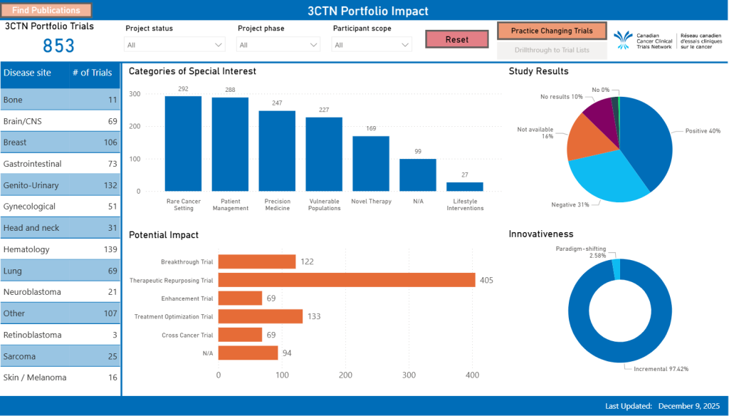 In addition, CPAC funding has enabled 28 Network cancer centres to begin collecting standardized, self-reported race data for patients enrolled in 3CTN Portfolio trials. Data collected initially by sites will provide important baseline information about trial patients that can be compared to demographic makeup of their catchment populations to highlight gaps in trial access. Over time, data compiled from across Network centres will reveal systemic regional and national gaps that can inform targeted strategies for with identified, underrepresented populations. This marks a Canadian first and a key milestone towards establishing sustainable best practices for ensuring that cancer clinical trials will more accurately reflect Canada’s diverse population and generate more generalizable results that contribute to equitable improvements in care.